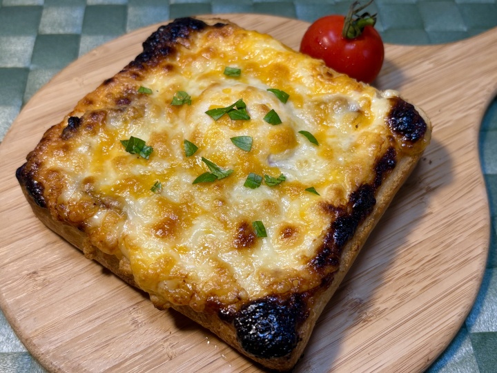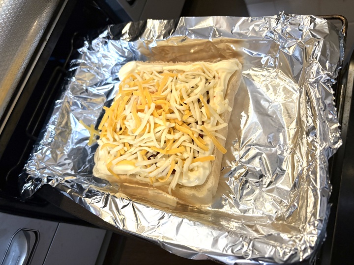 シュレッドチーズをたっぷりとかけ、トースターで5分~8分ほどこんがりと焼く。