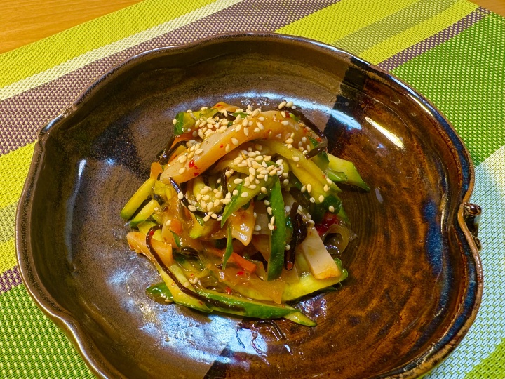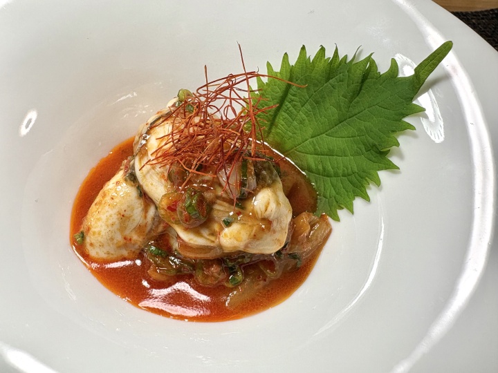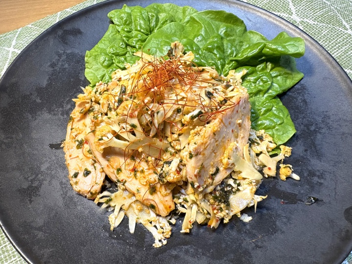 生の春カリフラワーとチキンの大葉キムチサラダ