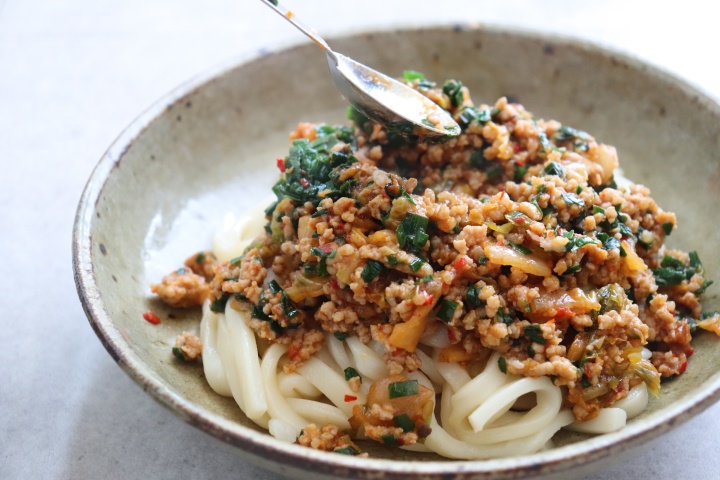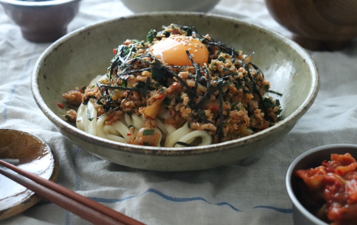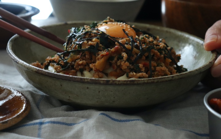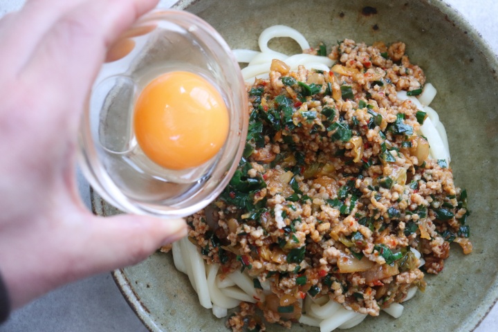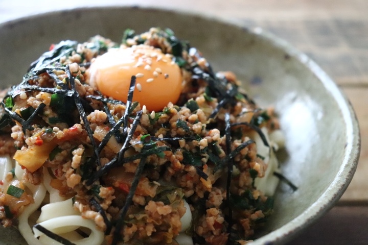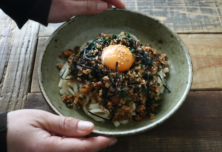 いろんな栄養が一皿でしっかり摂れる満足な一品。炭水化物、タンパク質、野菜をみんな混ぜ混ぜしてモリモリすすっていただきましょう。
