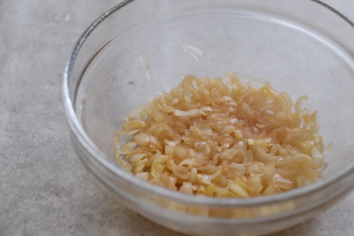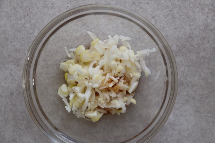 ネギをみじん切りにして、耐熱容器に入れる