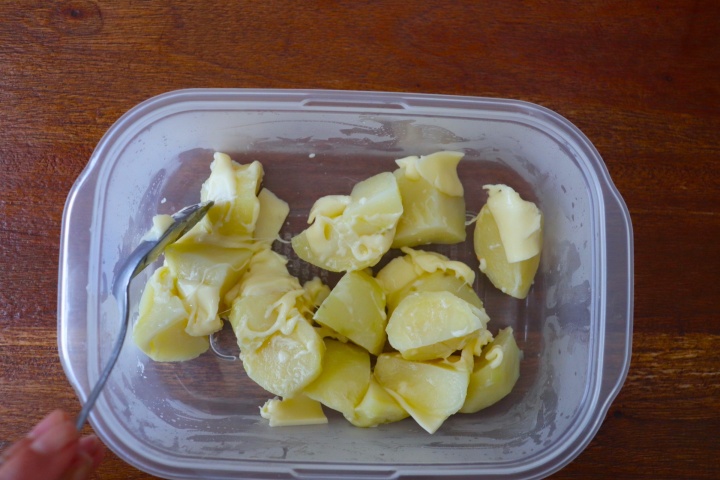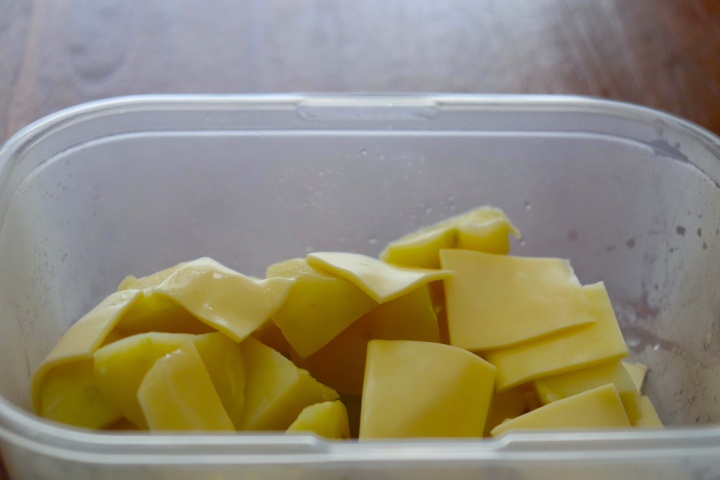 中まで火が通ったら、カットしたチーズを加えて混ぜ、粗熱をとる