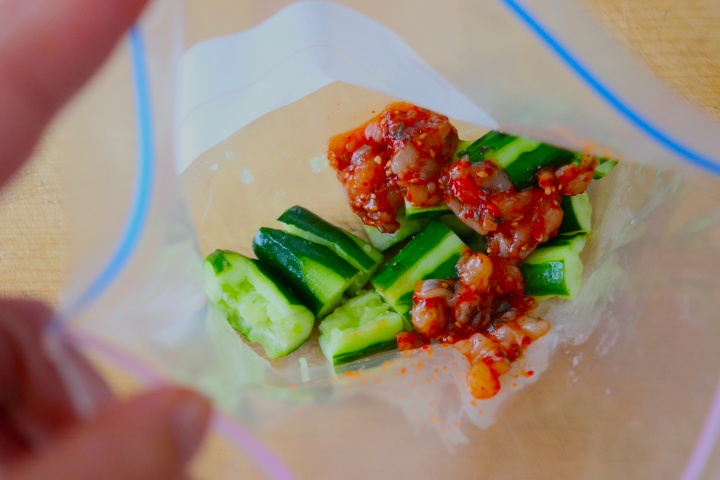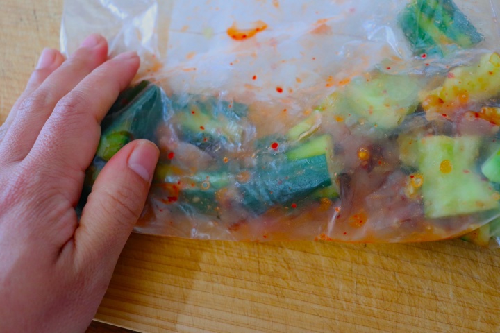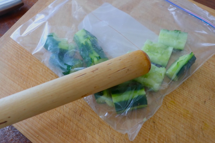チャック付き袋の中で叩いて和えて、洗い物が減るのも嬉しいポイント。