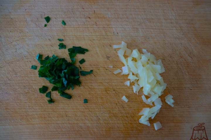 沢庵・大葉を粗みじんに切る。