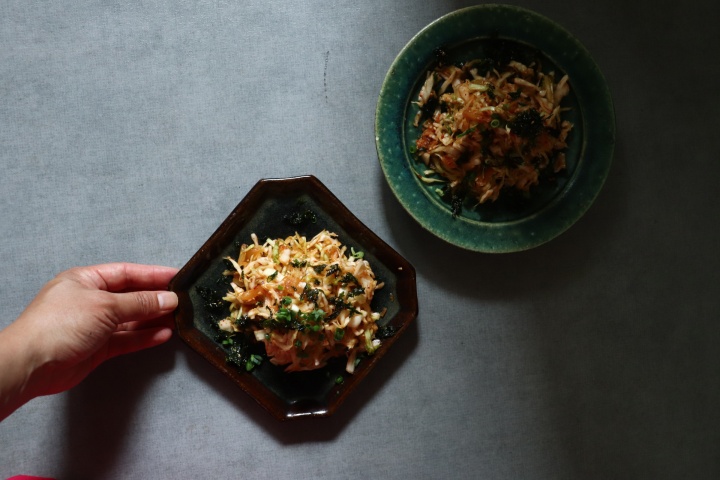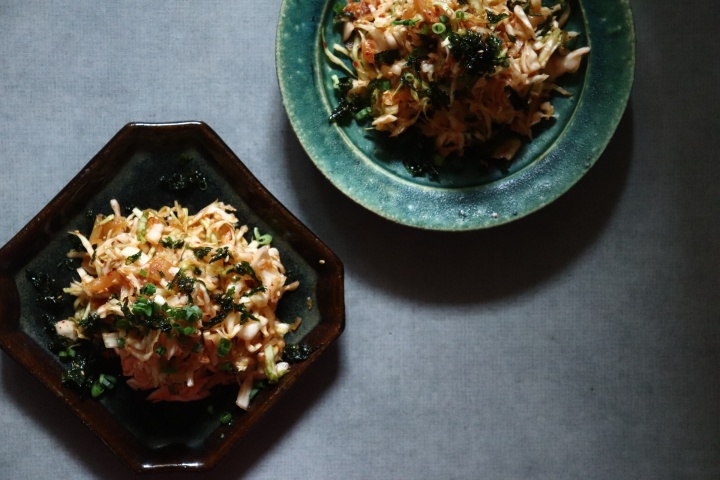 生野菜は特にそうですが、軽く塩揉みしてかさを減らすことで食べやすくなります。だしと旨味の効いたキムチを加えたら想像以上にたくさん食べられます。