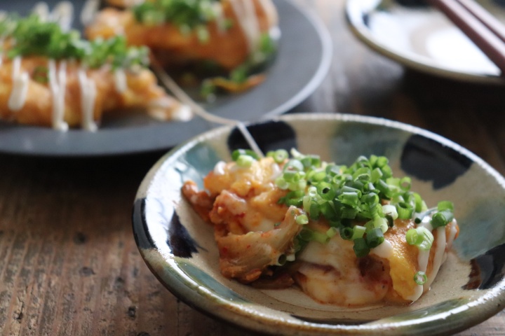 チーズを乗せて、とろけたら火を止め、キムチをのせる。