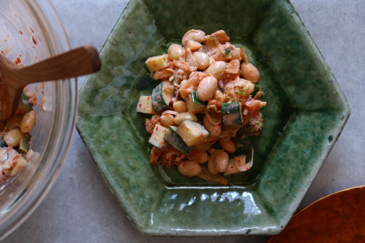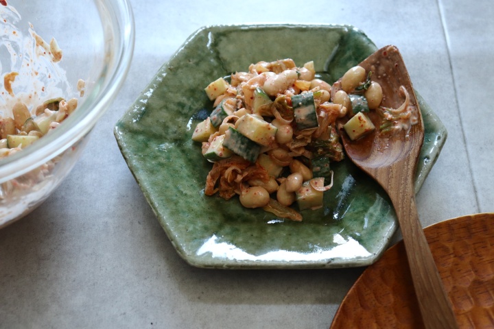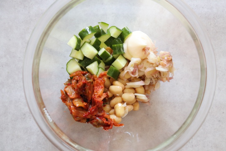 キムチとマヨネーズがあるので、本来塩は加えなくても良いですが、汗をかく夏場は塩を効かせた方が美味しくいただけます。