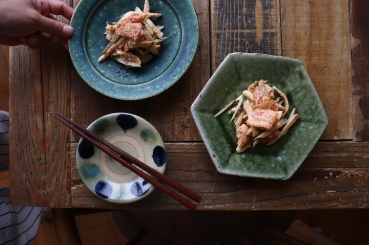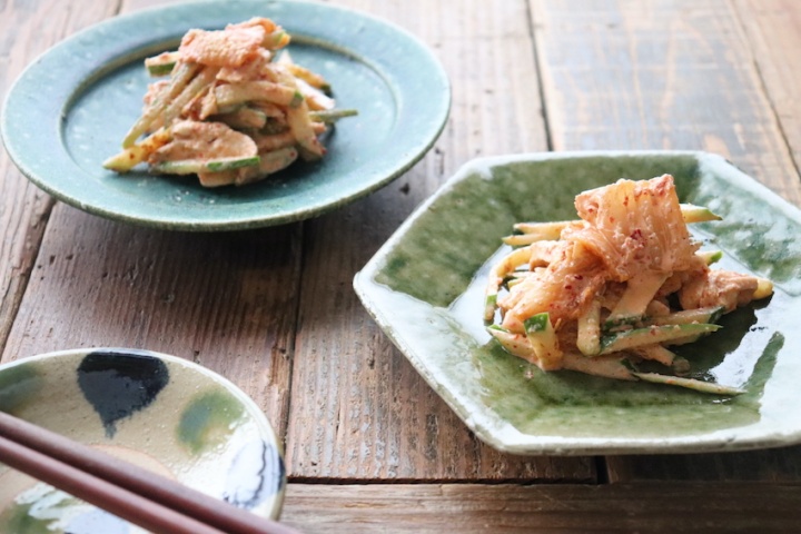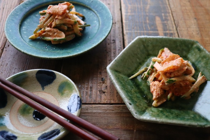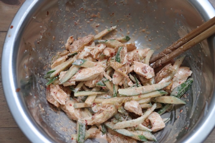 ボウルの中に細切りにしたきゅうりと、全ての材料を加えて和える。