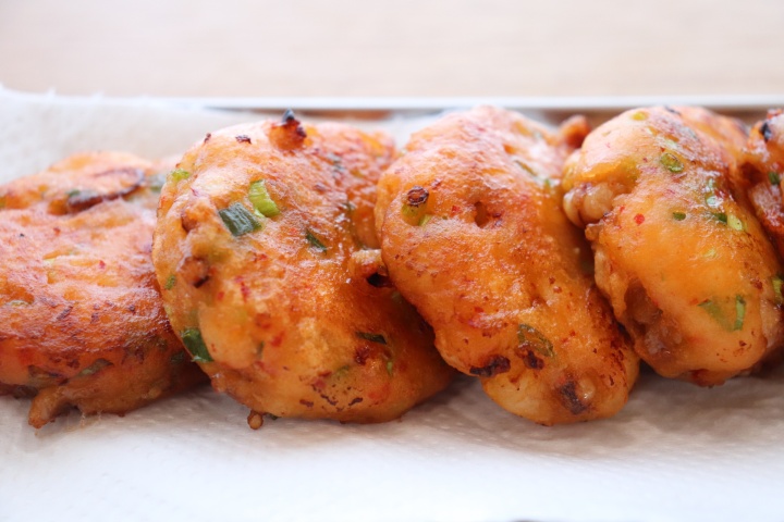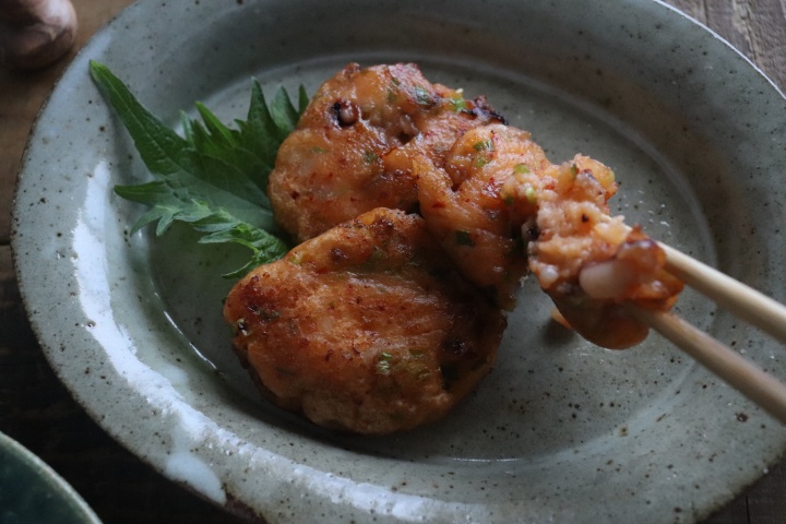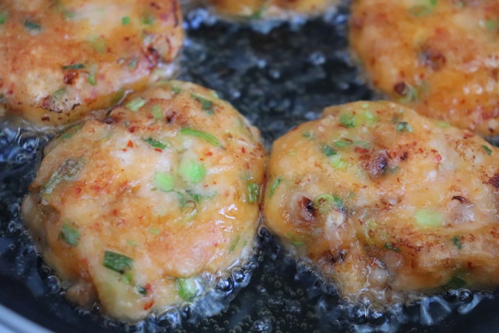 小判型に成型し、170度に熱した油できつね色になるまで両面揚げる。