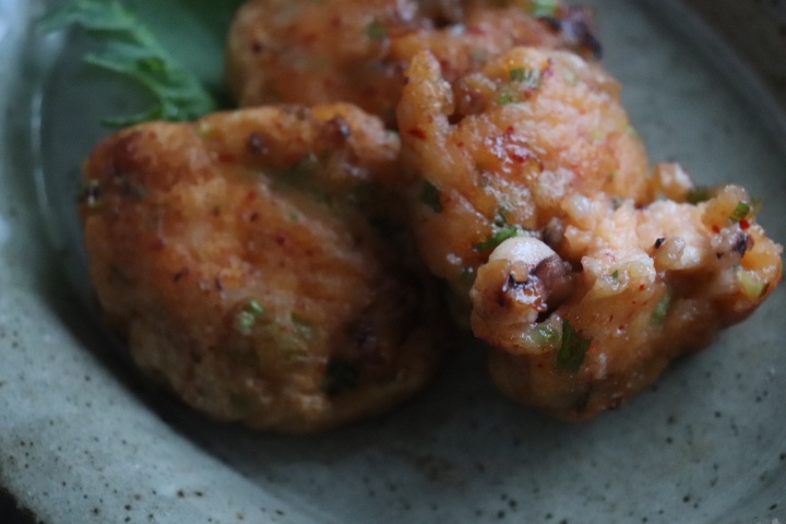 生地を混ぜる時は崩れてこないように手でぎゅっと成型するようにしましょう。たこキムチの味付けだけで十分いただけますが、お好みで生姜醤油などにつけてもいいでしょう。
