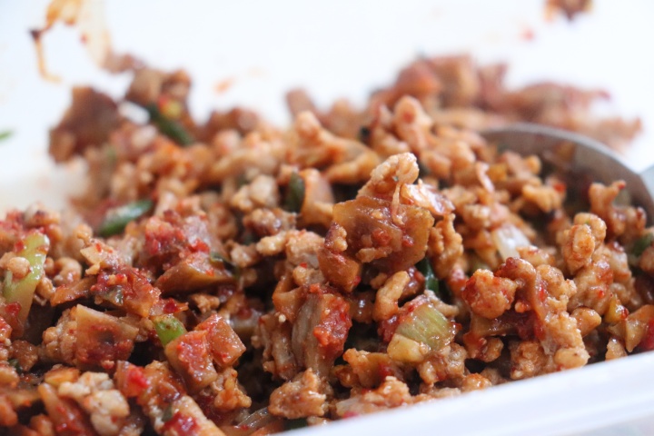 火を止め、粗熱が取れるまで冷ます。(作り置きする場合はこの状態で冷蔵または冷凍)その後、細かく刻んだごぼうキムチを混ぜる。