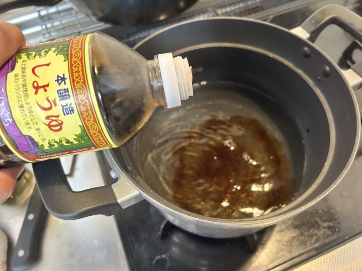 鍋にお湯を沸かし醤油を大さじ1加える。