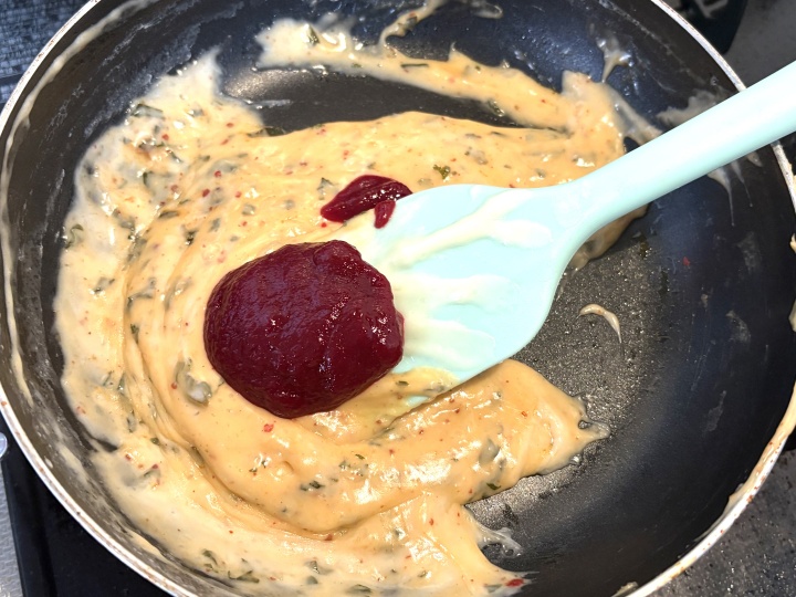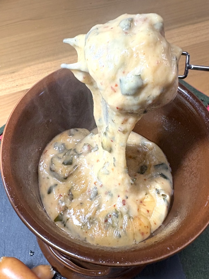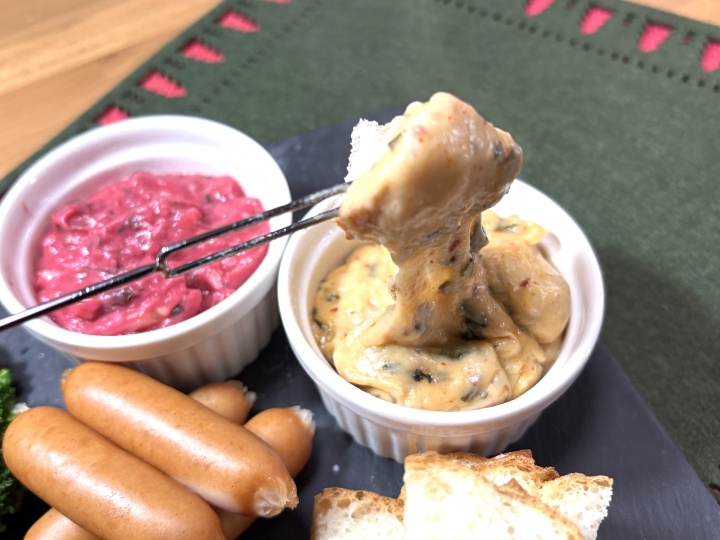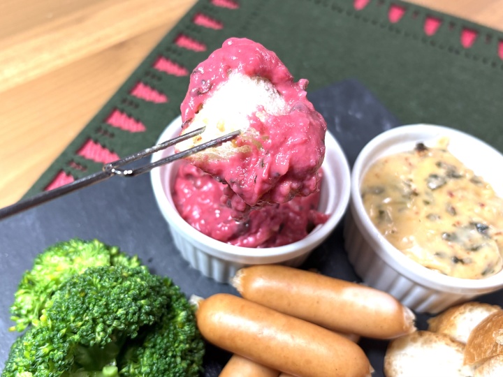 アレンジでピーツのピュレを混ぜて赤くすれば、紅白チーズフォンデュに!