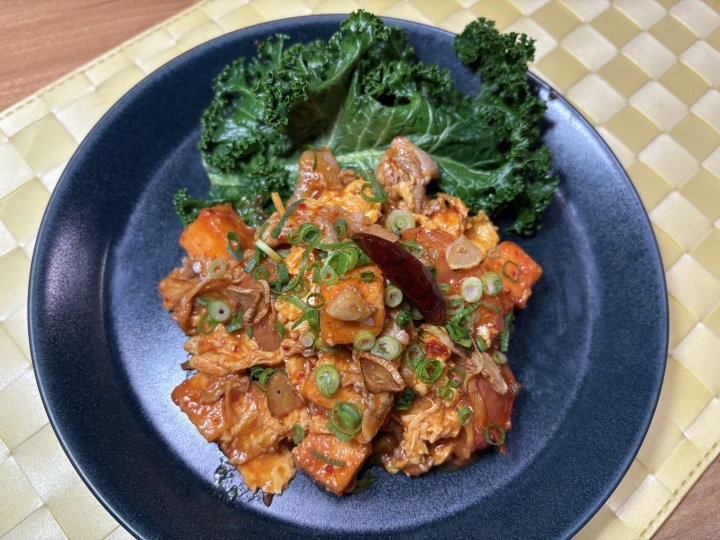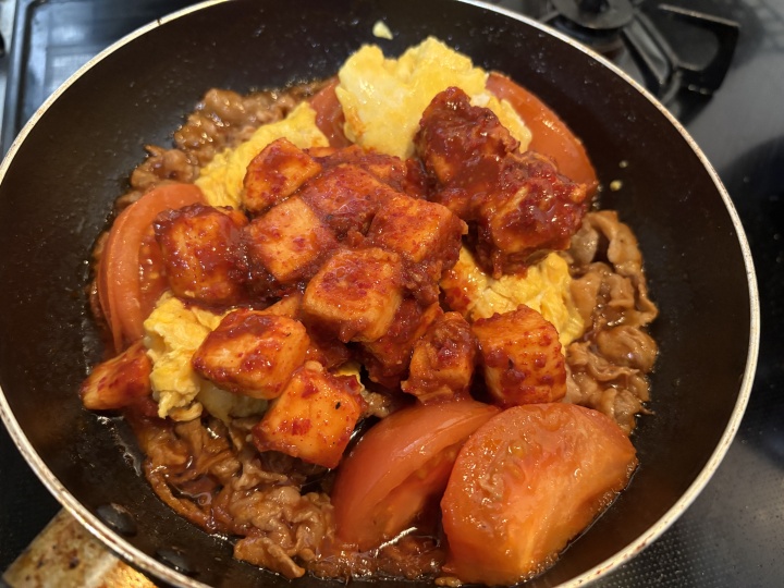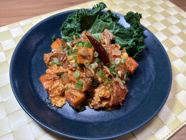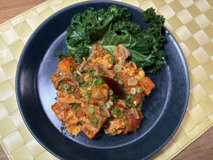 シンガポールなどでは定番のトマトと卵の炒め物に、八恵堂の美味しい山芋キムチを加えたら、栄養バランスもバッチリ、さらに美味しくなりました!