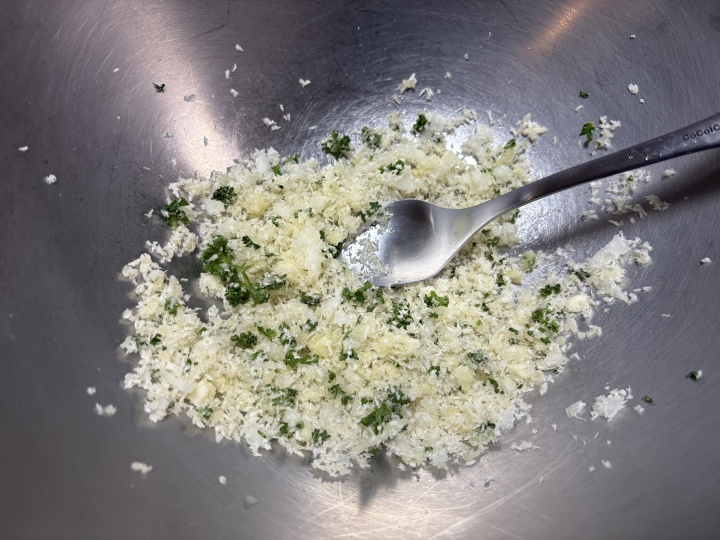 香草パン粉は分量で合わせる。