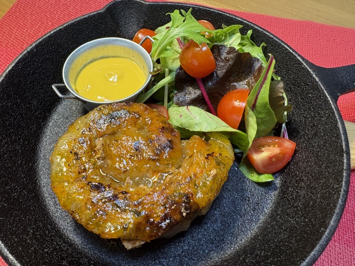 途中何度か返す。串を刺して透明な液体が出るまで焼けばOK!