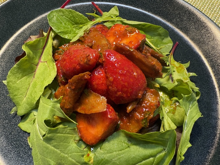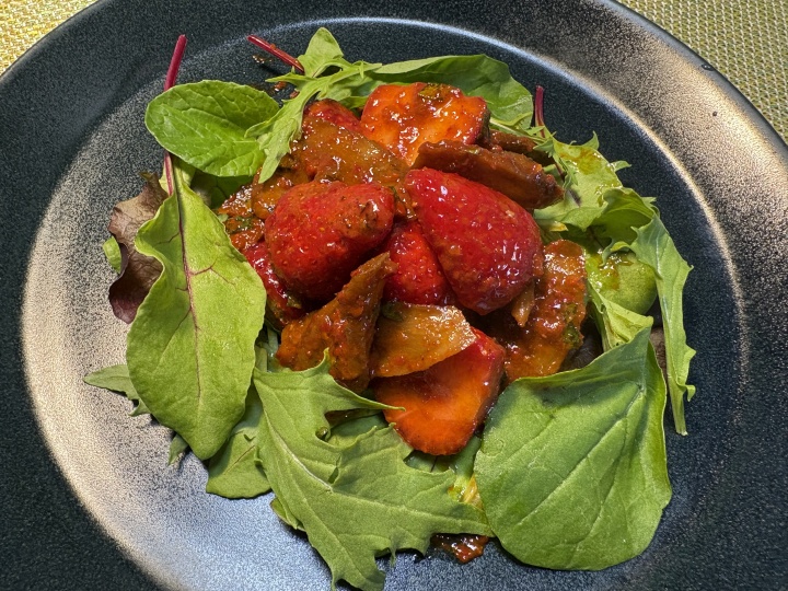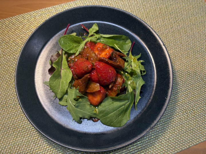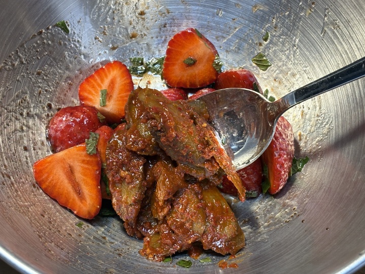 八恵堂のクセのない牛蒡キムチの熟成した甘み旨みが、フレッシュのイチゴに良くあいます!