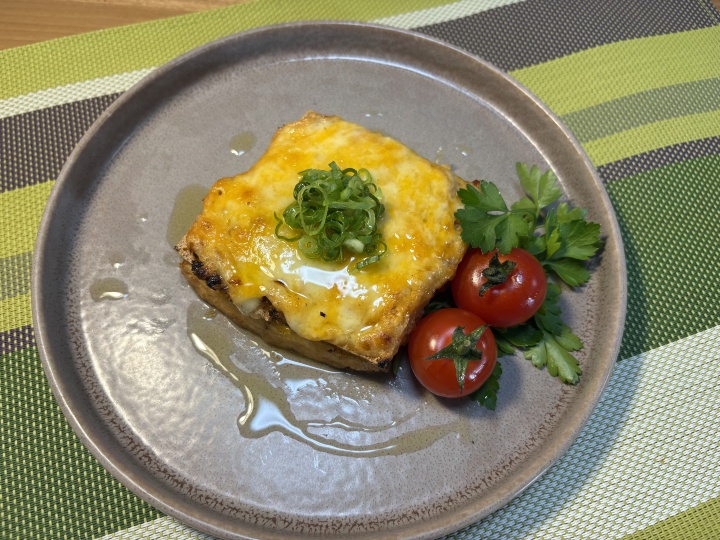 オーブントースターで香ばしくこんがりと焼く。