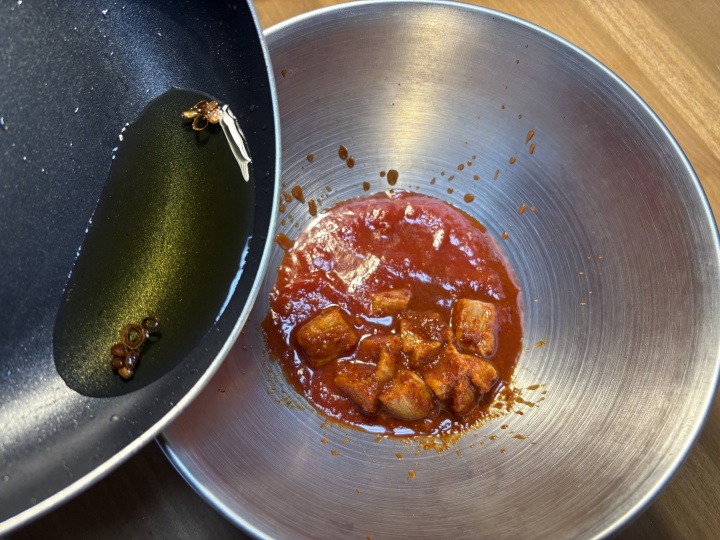 美味しくてクセの少ない八恵堂のキムチとトマトソースの相性は抜群です。