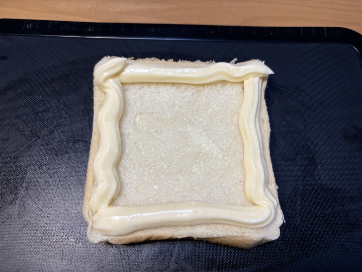 食パンの周りにマヨネーズを絞る。