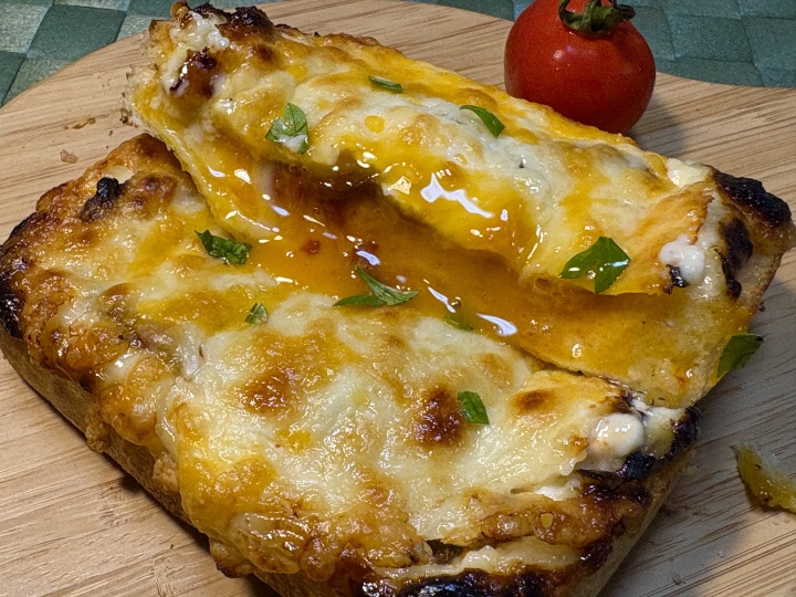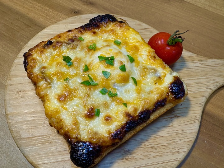シュレッドチーズをたっぷりとかけ、トースターで5分~8分ほどこんがりと焼く。